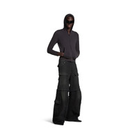 Flared Cargo Pants in black soft left hand denim PRODUCT DETAILS • Soft black left hand denim • This item is unisex • Regular fit • Flared leg • Mid-waist • Covered zip fly • 5 belt loops • 2 slash pockets at front • 9 cargo pockets : 2 front, 3 side, 4 back • 1 zip at knee to remove the bottom • Darts at knee • Washed-out effect • Made in Italy • Dry cleaning • Model is 180 cm / 5'11" and is wearing a size S Material: 100% cotton