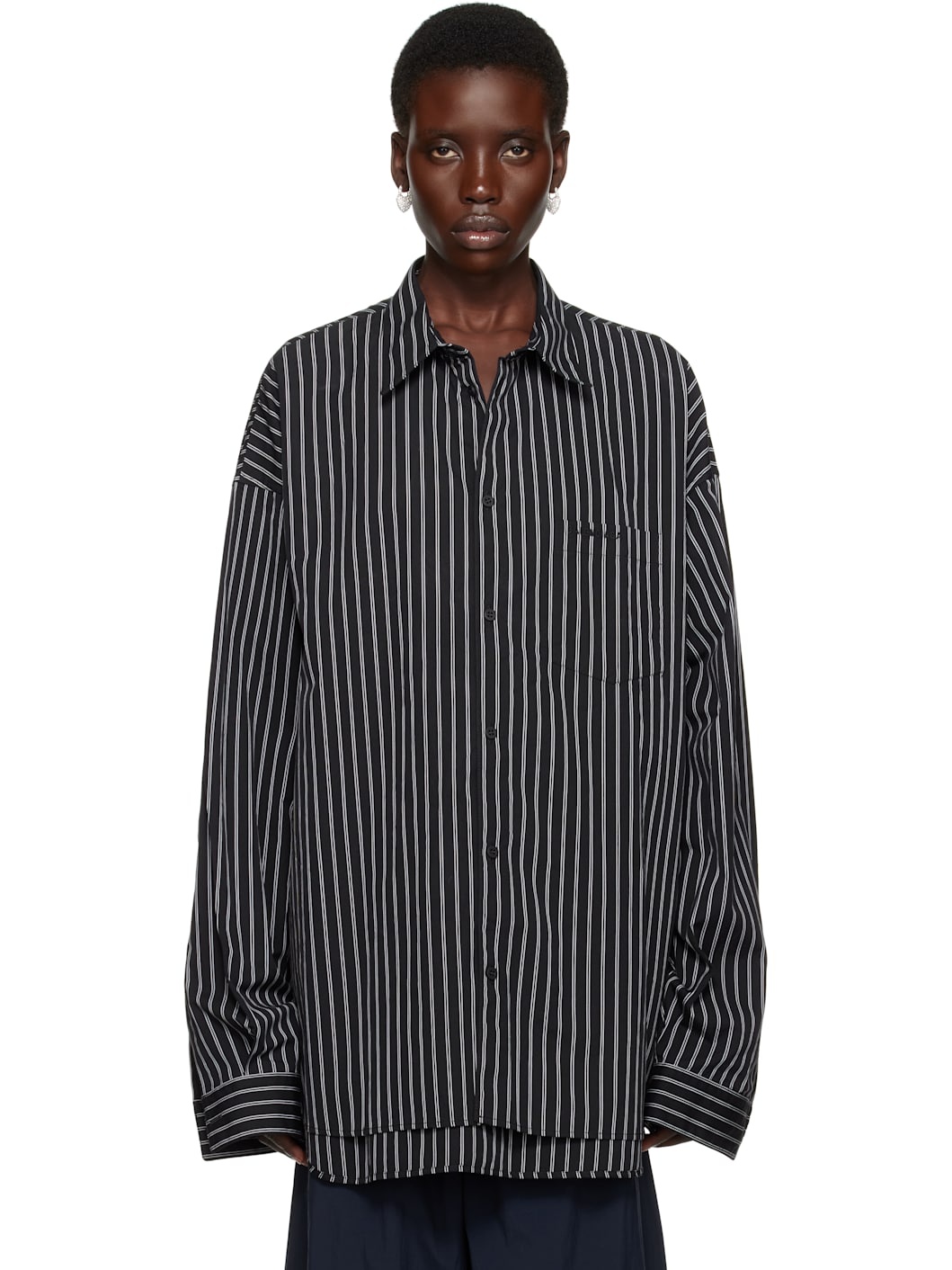 Cotton poplin shirt. Stripes throughout. · Layered construction · Spread collar · Button closure · Logo embroidered at patch pocket · Shirttail hem · Dropped shoulders · Pleats at buttoned barrel cuffs Supplier color: Black/White Body: 100% cotton. Trim: 100% polyester. Made in Italy 251342F109001
