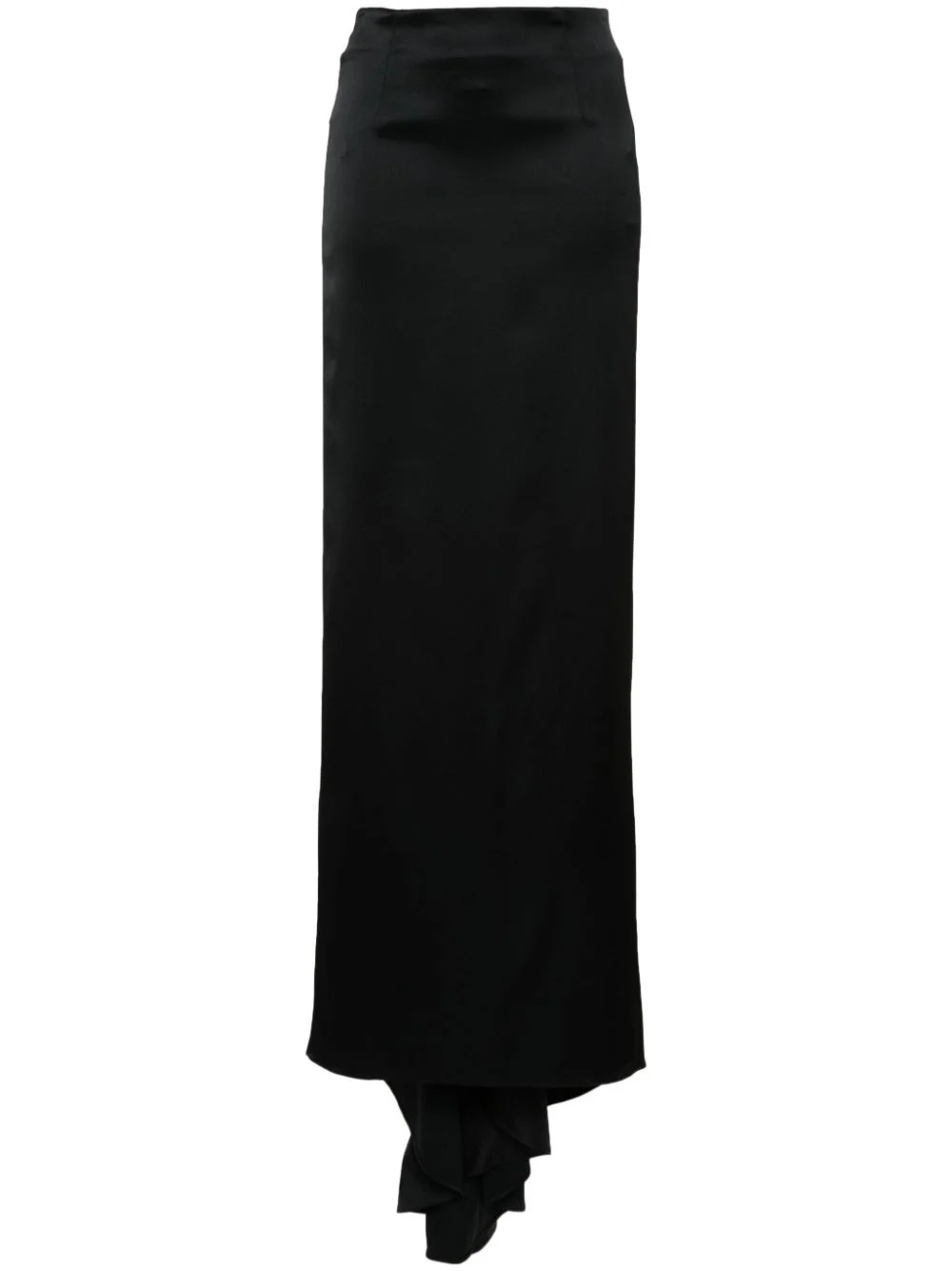 floor-length maxi skirt For SS23 Balenciaga looks at eveningwear through a modern and understated lens. Crafted in a lustrous satin finish, this maxi skirt has a sleek silhouette that flows with a long floor-length train. Highlights - Black - Silk - Satin finish - Dart detailing - High-waisted - Concealed rear zip fastening - Floor-length - Train Made in Italy Composition Outer: Acetate 81%, Viscose 16%, Elastane 3% Lining: Silk 100% SIZE & FIT Model measurements Height 5 ft 10 in(1.77 m) Bust/Chest 32.28 in(82 cm) Hips 35.03 in(89 cm) Waist 25.19 in(64 cm) FittingInformation This maxi-length skirt is intended to be worn high on the waist Particularly long in length; consider your own measurements Made from a midweight stretch fabric, this piece offers elasticity and flexibility when worn This piece fits true to size – take your usual size Measurement HIPS 35 in(88.9 cm) LENGTH 45.98 in(116.8 cm) WAIST 27.99 in(71.1 cm)