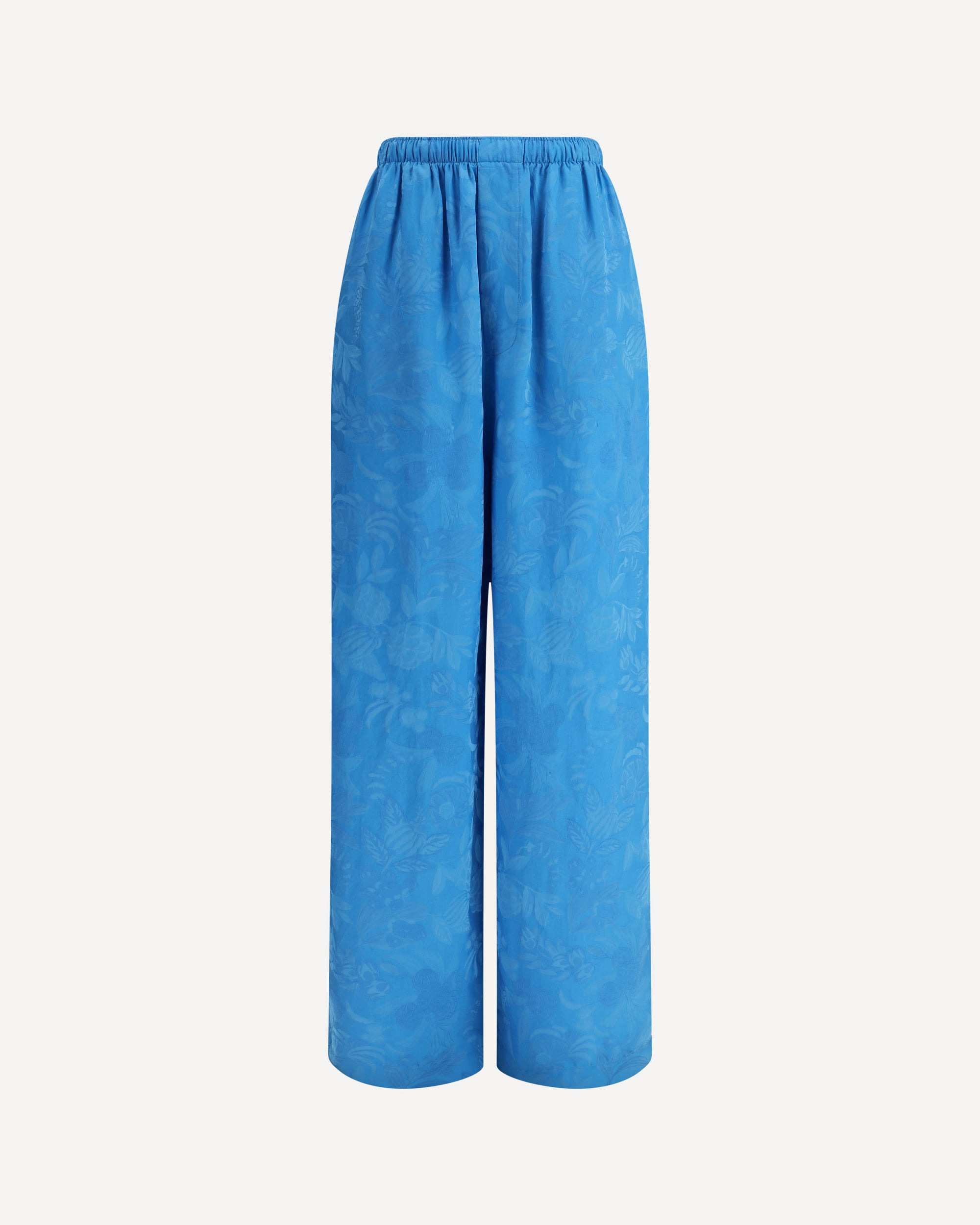 Balenciaga's floral print Pants combine comfort and style in a relaxed, distinctive design. Featuring an elasticized waistband and loose fit, they feature two side welt pockets and a patch pocket on the back. The vibrant floral print adds a graphic and contemporary touch, perfect for casual looks with a strong character. DETAILS - Sku: 847154TSO23_4850 - Season: AW25 - Fit: Regular - Composition: GENERAL 62% Viscose 38% Silk - MADE IN PORTUGAL