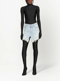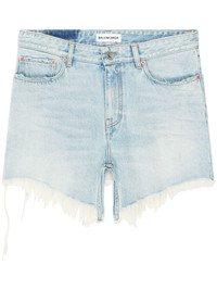 frayed-hem denim mini skirt