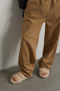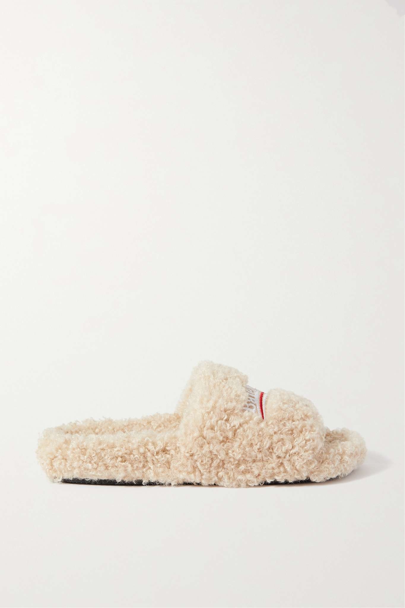 Furry logo-embroidered faux shearling slides