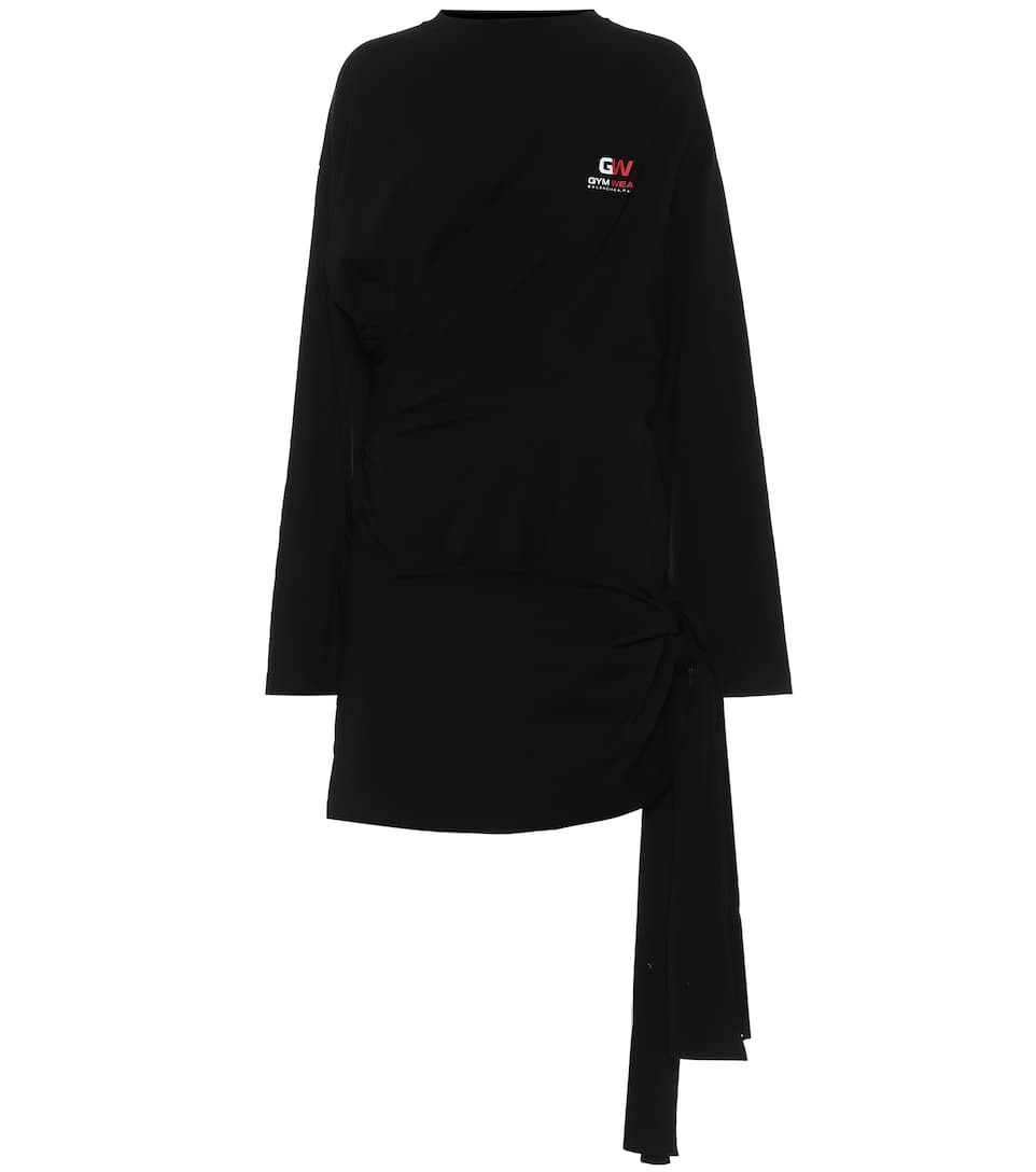 Gym Wear Short Wrap Dress in black stretch jersey PRODUCT DETAILS Composition: 93% Cotton, 7% Elastane - Stretch cotton jersey - Short draped dress - Long sleeves - Dropped shoulders - Gym Wear logo printed at chest - Made in Portugal - Cold machine wash - Model is 178 cm / 5'10" and is wearing a FR size S