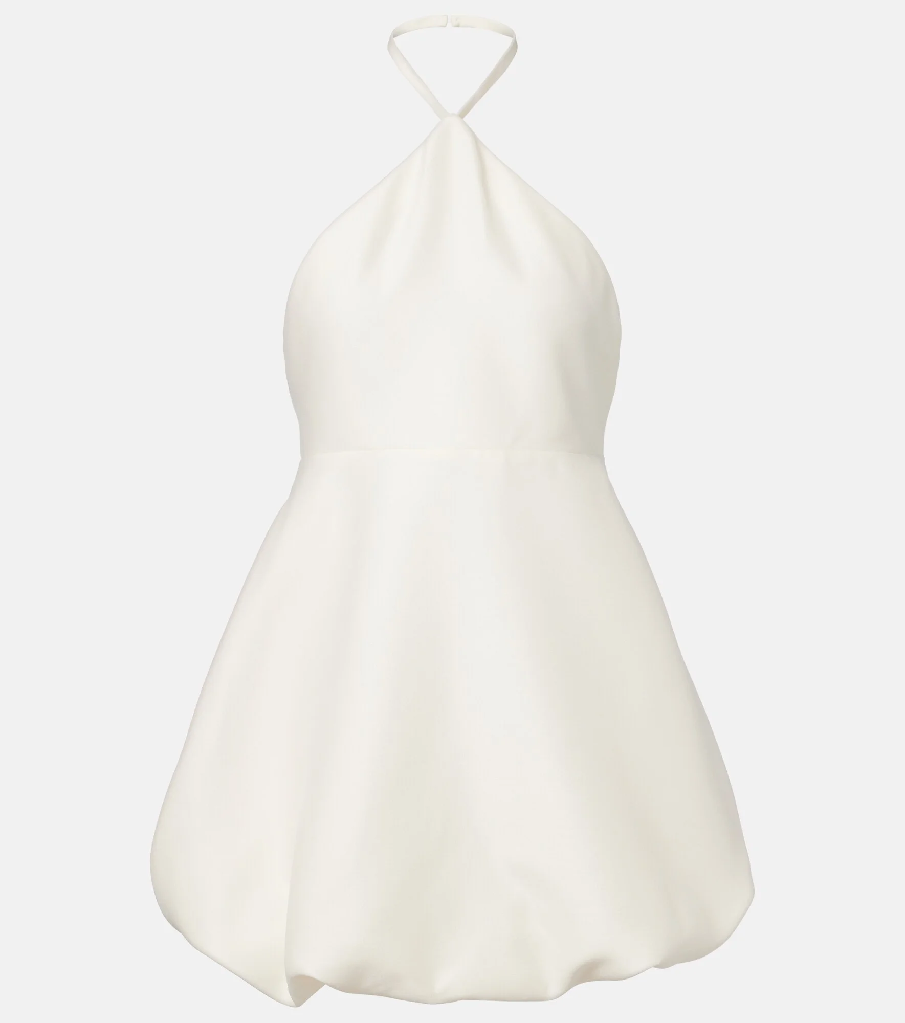 Innovation is at the heart of Balenciaga, which proudly presents its modern interpretation of fashion in every piece. This wool and silk minidress boasts a voluminous peplum silhouette with detachable halterneck ties. Product Details - Material: 80% wool, 20% silk - Care instructions: dry clean - Made in Italy - Color: white - Designer color name: Ivory - Detachable halterneck ties - Closure: concealed zipped side - Lining: 100% cupro - Item number: P01158855 Size & Fit - Fits small to size - we recommend trying one size larger - Low back - Cinched waist - Non-stretchy fabric - The model seen in the picture is 178cm-5'10" and wearing a size FR 36