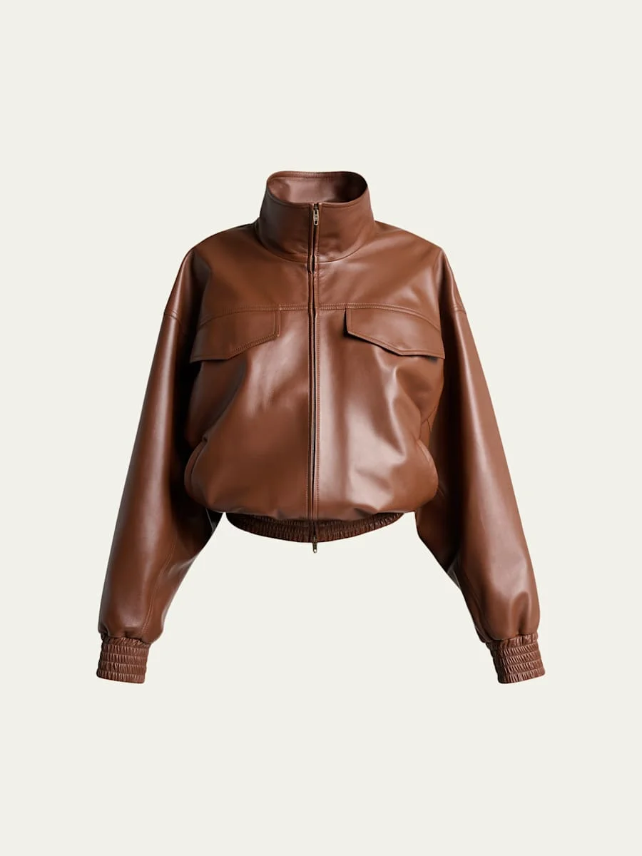 High-Collar Leather Blouson Jacket