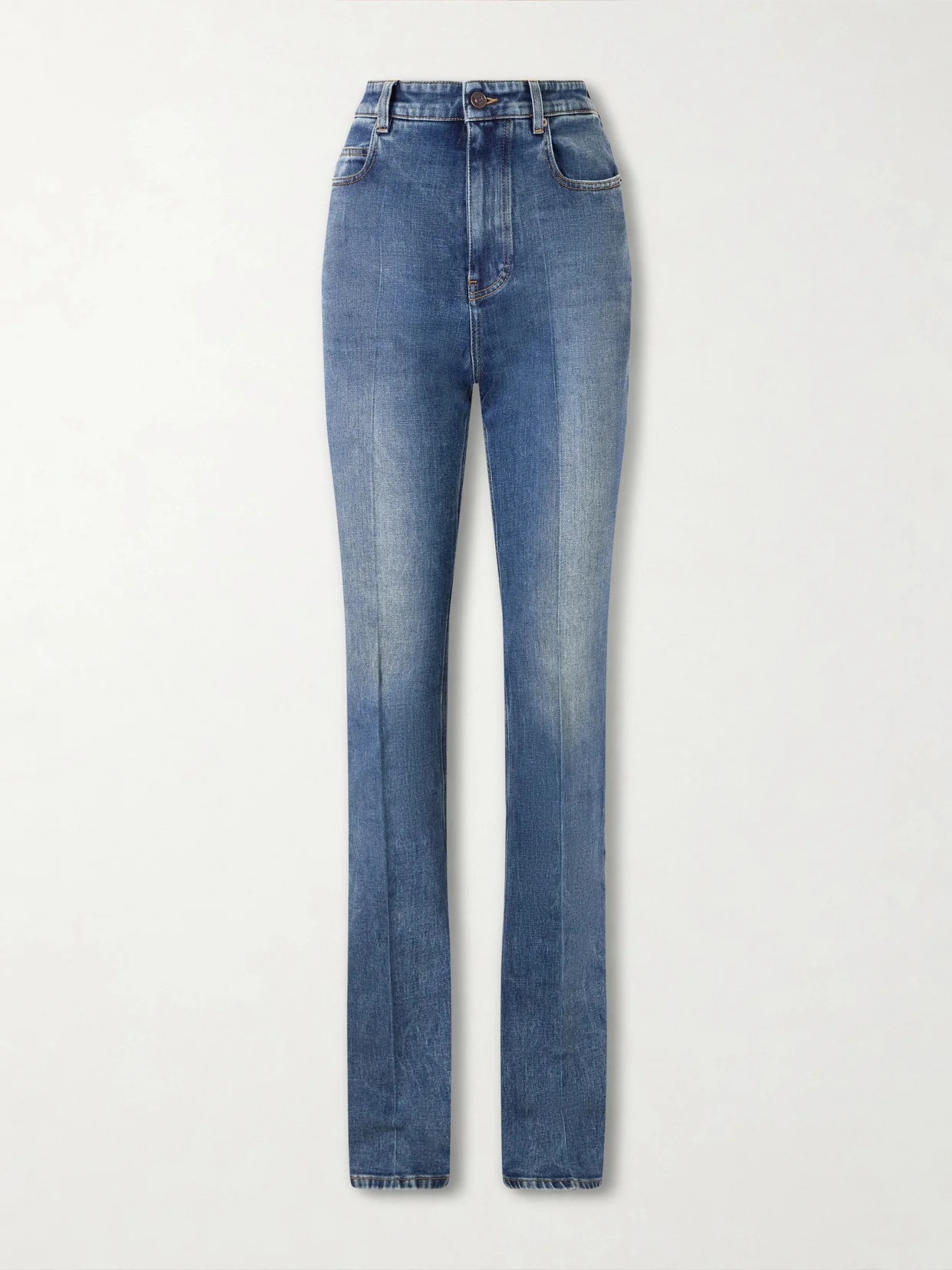 Balenciaga's jeans are made from cotton denim with a high-rise, skinny fit. Pressed creases add a contemporary, polished touch, making them versatile enough to pair with anything-from casual tees to tailored blazers.