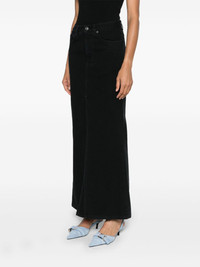 mid-rise denim skirt Highlights - Black - Cotton - Denim - Logo patch to the rear - Mid-rise - Concealed fly and button fastening - Belt loops - Classic five pockets - Front slit - Unlined - Straight hem - Mid-length Made in Italy Composition Lining: Polyester 65%, Cotton 35% Outer: Cotton 100% SIZE & FIT FittingInformation This maxi-length skirt is intended to be worn just below the waist Sturdy and hard-wearing, this denim piece offers no stretch This piece fits true to size – take your usual size Washing instructions Machine Wash