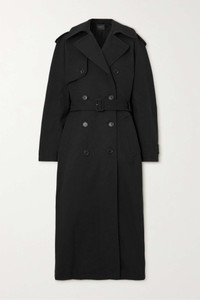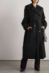 EDITORS'NOTES Balenciaga takes a more traditional approach to outerwear with this double-breasted trench coat. Made from wool and cotton-blend, it's designed in an oversized, longline shape that can be cinched in using the belt. It features a button-fastening storm flap and shoulder epaulettes. SIZE & FIT - Fits true to size, take your normal size - The model is wearing a size larger to achieve the runway look - Designed for an oversized fit, cut to be worn very loose - Mid-weight, non-stretchy fabric - Model is 177cm/ 5'10" and is wearing an FR 38 DETAILS & CARE - Black wool and cotton-blend - Button fastenings through double-breasted front - 57% wool, 43% cotton; lining: 100% cupro - Dry clean