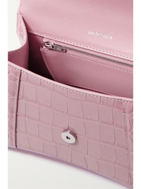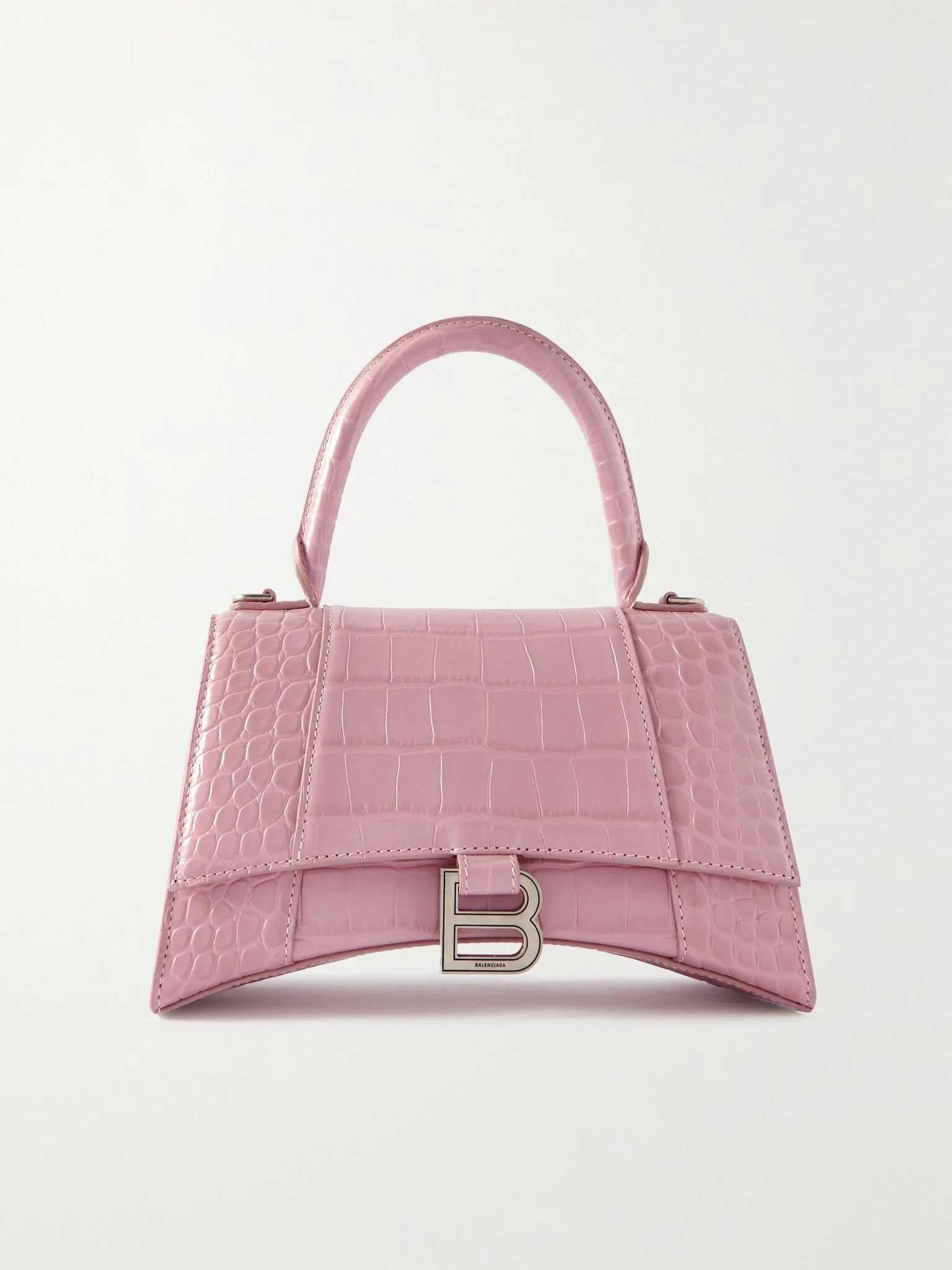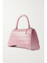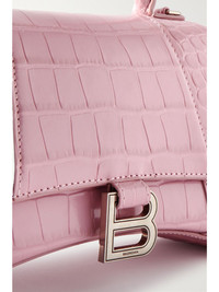 Balenciaga's 'Hourglass' bags are inspired by the label's sculptural blazers. This small tote has been crafted in Italy from croc-effect leather and detailed with a brushed silver 'B' at the front flap. Store your wallet, phone and a paperback inside, removing the adjustable shoulder strap to carry it by the top handle. Details & Care - Baby-pink croc-effect leather (Calf) - Magnetic-fastening front flap - Comes with dust bag - Weighs approximately 2lbs/ 0.9kg