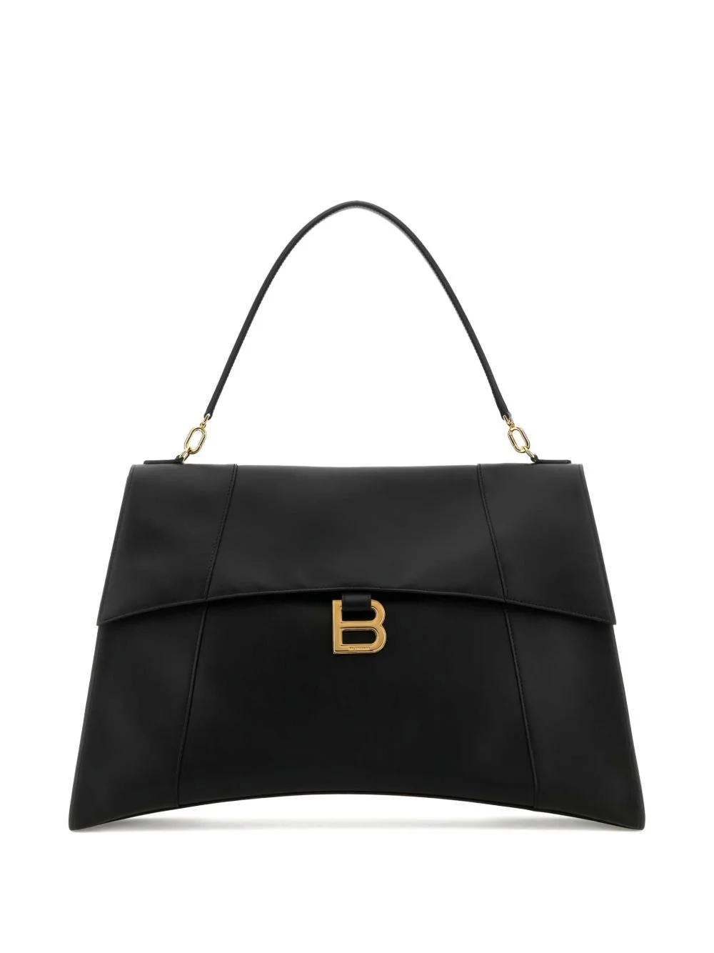 Hourglass structured leather handbag Highlights - Black - Top handle - Magnetic flap closure - Gold-tone logo detail - Interior compartment Made in Italy Composition Lining: Leather 100% Outer: Calf Leather 100% SIZE & FIT Measurement DEPTH 7.08 in(18 cm) HANDLE 8.85 in(22.5 cm) HEIGHT 11.81 in(30 cm) WIDTH 18.5 in(47 cm)