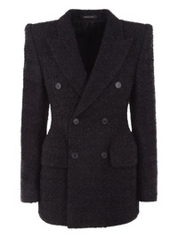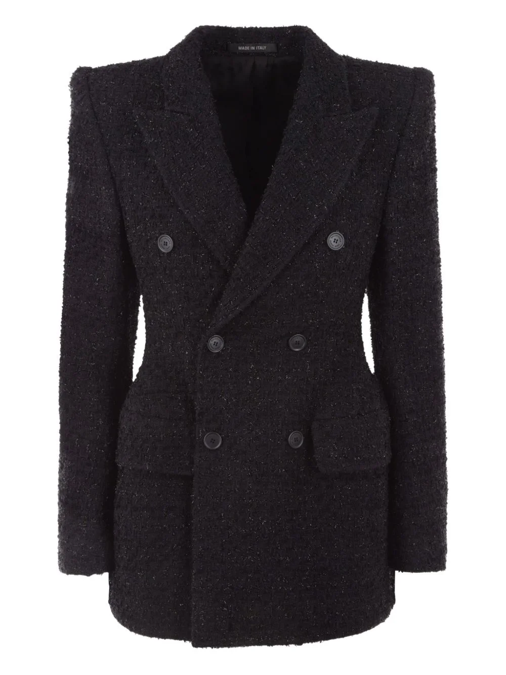 Hourglass tweed blazer Highlights - Black - Cotton blend - Tweed - Wide peak lapels - Shoulder pads - Double-breasted button fastening - Fitted waistline - Two front flap pockets - Long sleeves - Straight hem Made in Italy Composition Cotton 50%, Polyamide 50% SIZE & FIT Measurement BUST 32 in(81.3 cm) LENGTH 29.48 in(74.9 cm) WAIST 32 in(81.3 cm) SLEEVE LENGTH 25 in(63.5 cm)