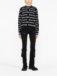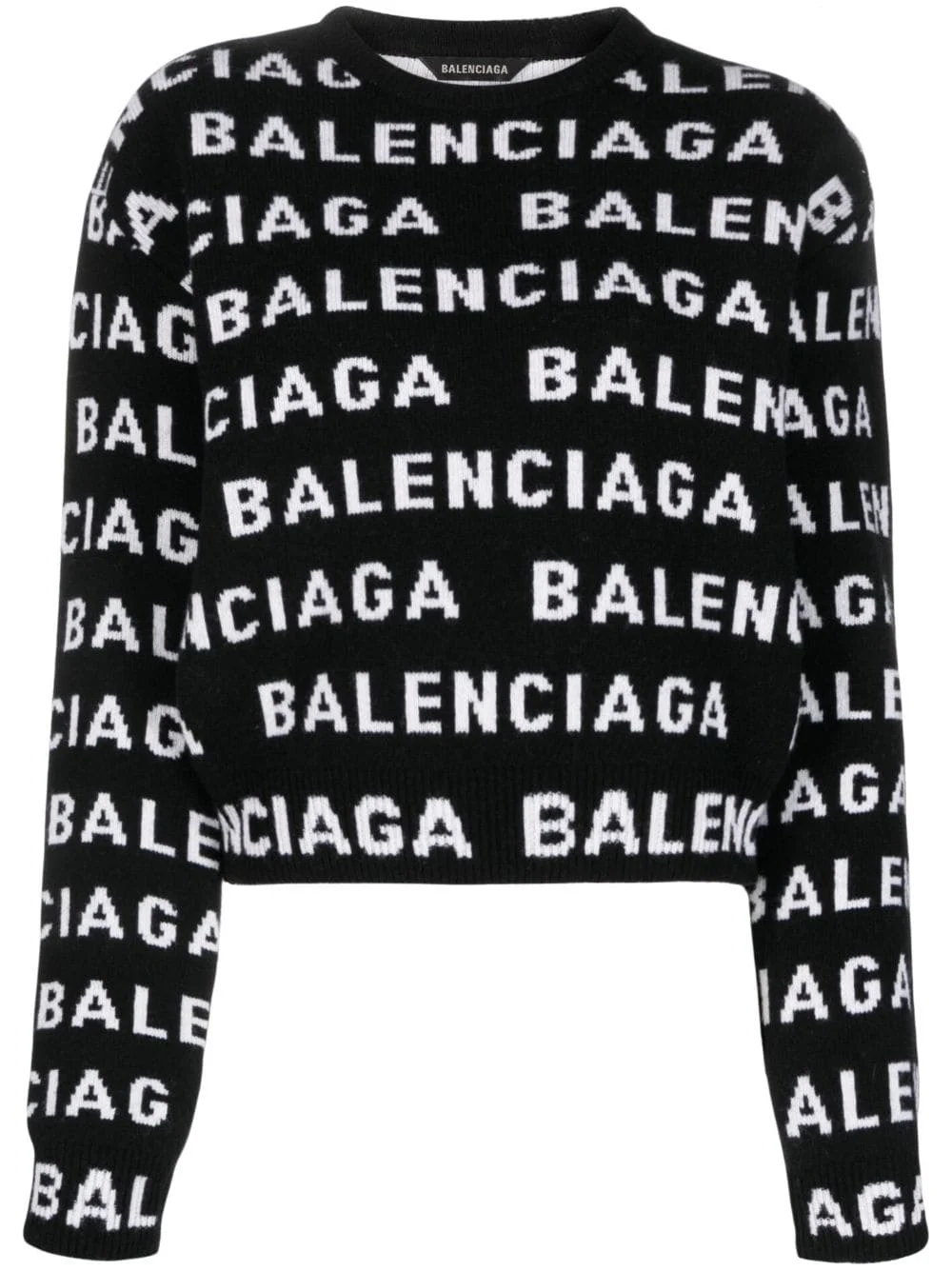 intarsia-logo crew-neck jumper The Spanish fashion house of Balenciaga offers cutting-edge styles that balance clean, modern silhouettes with strong shapes and innovation with refinement. This black jumper is knitted from a soft blend of wool and features a crew neck, long sleeves, a ribbed hem and cuffs and an all-over intarsia knit logo design. Highlights - Black/white - Wool blend - Intarsia-knit logo - Crew neck - Drop shoulder - Long sleeves - Ribbed cuffs and hem Made in Italy Composition Wool 98%, Polyamide 2% SIZE & FIT Model measurements Height 5 ft 10 in(1.79 m) Bust/Chest 31.49 in(80 cm) Hips 35.03 in(89 cm) Waist 23.62 in(60 cm) FittingInformation Designed for a relaxed fit, this piece allows for comfort and movement when worn The ribbed hem offers a close, comfortable fit Made with a midweight knit, this piece offers some stretch This piece fits true to size – take your usual size Washing instructions Dry Clean Only