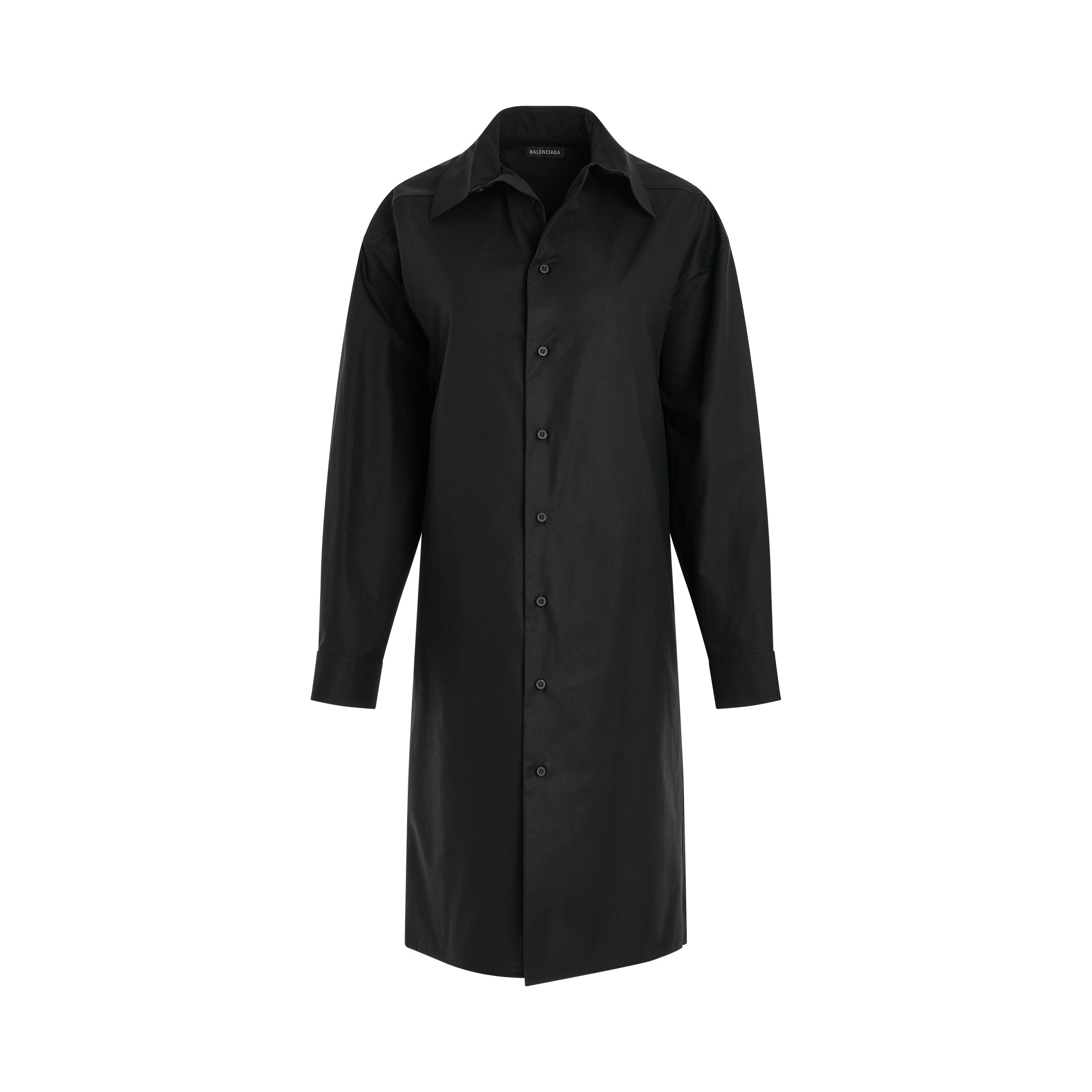 Introducing the elegant and versatile Kick Collar Dress in Black. With its unique kick collar design, this dress is perfect for any occasion. Made with high-quality fabric, it offers both comfort and style. Elevate your wardrobe with this must-have piece. - Composition: 100% Cotton - Classic collar - Front button fastening - Long sleeves - Chest patch pocket - Curved hem SKU: 773544TNM601000