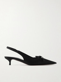 Balenciaga's 'Knife' pumps are so named for their ultra-sharp pointed toes. Made in Italy from black twill, they're topped with delicate bows and have elasticated slingback straps. The manageable kitten heels and lightly cushioned insoles ensure all-day comfort.
