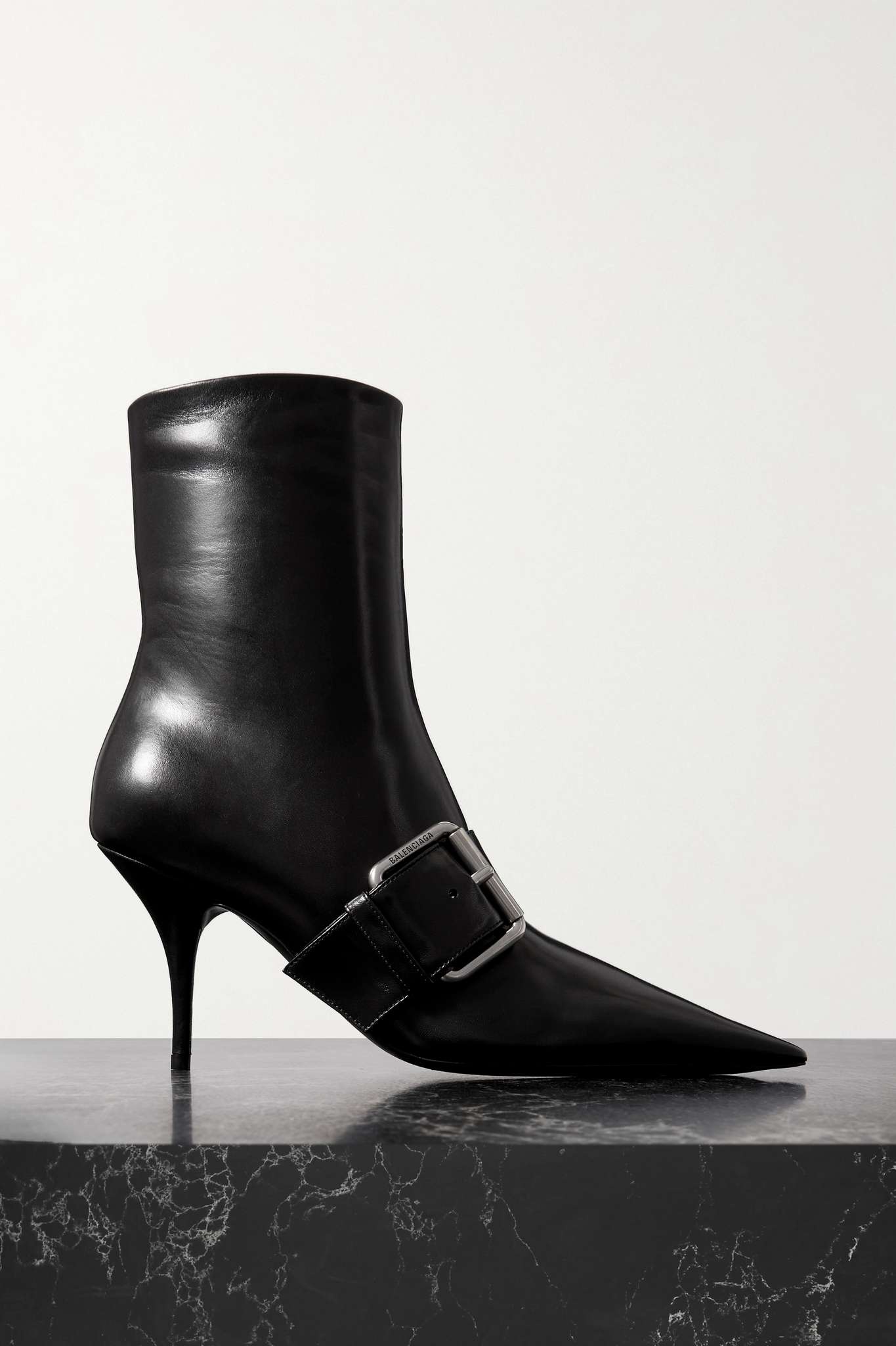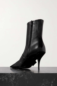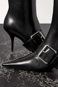 EDITORS'NOTES True to their name, Balenciaga's 'Knife' boots are defined by their pointed toes and razor-sharp heels. They've been made in Italy from smooth black leather and wrapped with straps that resemble a buckled belt. SIZE & FIT - Fits true to size, take your normal size - Italian sizing DETAILS & CARE - Heel measures approximately 90mm/ 3.5 inches - Black leather (Sheep) - Zip fastening along side