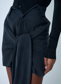 Knotted mini skirt in cotton pique. - Mid rise - Trompe l'œil construction: Long sleeve polo base - 100% Cotton. Dry clean - Color: Black - Code: 850245 TKVA5 2072