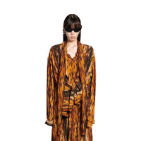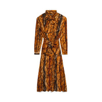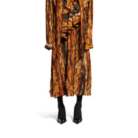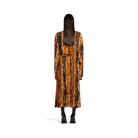 Knotted Dress in brown AI Fur technical crepe is from look 24 of Balenciaga Spring 25 Collection. PRODUCT DETAILS • Technical crepe AI Fur printed • Draped • Two long panels at collar to tie like a Lavaliere or let hang down • Buttons on blouse part • Long sleeves • Knotted at waist • Ankle-length • Made in Italy Main material: 100% polyester