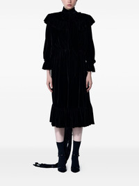 ruffled lace-up midi dress Highlights - Black - Stand collar - Ruffled neckline - Long sleeves - Rear lace-up fastening Made in Italy Composition Viscose 77%, Silk 23% Washing instructions Read Manufacturer Guidelines