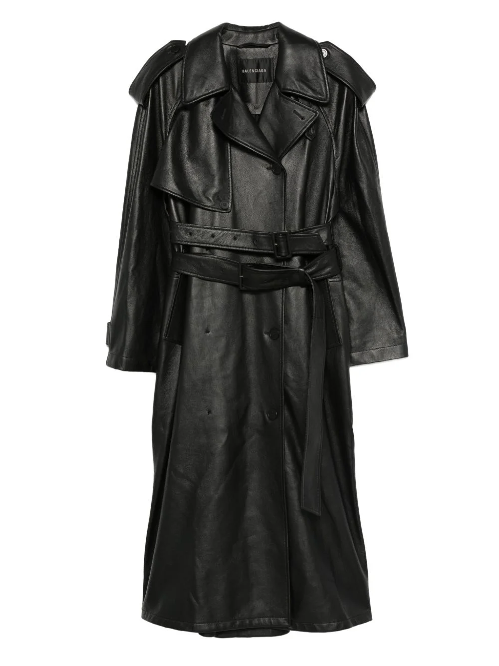 belted leather trench coat Highlights - Black - Lambskin - Belted waist - Double-breasted button closure - Shoulder epaulettes Made in Italy Composition Lambskin 100% SIZE & FIT Model measurements Height 5 ft 11 in(1.8 m) Bust/Chest 31.49 in(80 cm) Hips 36.61 in(93 cm) Waist 24.4 in(62 cm) Washing instructions Specialist Cleaning