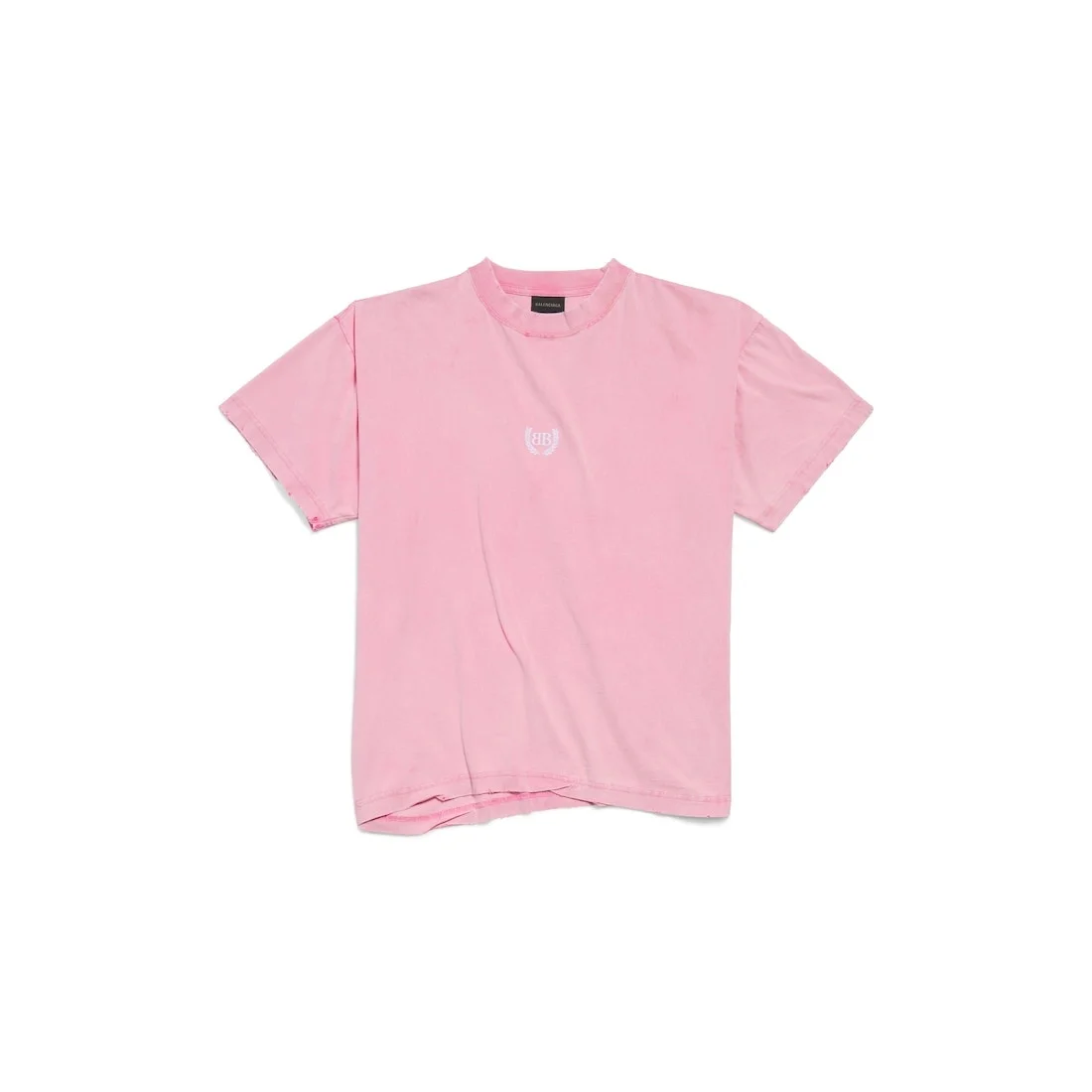 Laurel Classic Boxy T-Shirt in baby pink dry jersey PRODUCT DETAILS • Dry jersey • Crewneck • Short sleeves • Laurel classic artwork embroidered at chest • Asymmetrical bottom • Worn-out details • Made in Portugal Main materia: 100% cotton