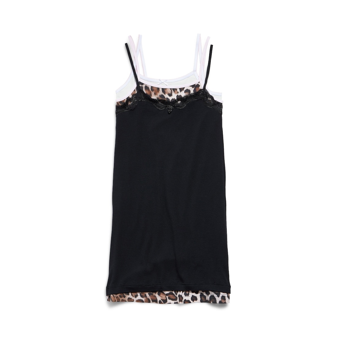 layered mini dress Highlights - Black/multicolour - Micromodal blend - Layered design - Slip-on style - Thin shoulder straps - Sleeveless - Bow detailing - Lace detailing - Straight hem - Thigh-length - This item contains at least 50% materials which are certified or widely recognised as having a lower environmental impact through production and/or manufacturing processes that reduce water consumption and the use of harmful chemicals, or re-use by-products of the production process. - We've partnered with good on you — an independent agency that rates how brands perform in relation to their impact on the planet, people and animals, with a multi-criteria rating simplified to a five points scale. in order to be awarded our conscious label, larger brands need to score a minimum of four out of five ('good'), while smaller brands must score at least three out of five ('it's a start'). - This item comes from a brand rated three out of five ('it's a start') by good on you at the time it was added on farfetch. please note, this is a brand-level rating and does not guarantee that this product is made with conscious materials. - Learn more about what makes a product conscious on our conscious criteria page Imported Composition Micromodal 95%, Elastane 5%