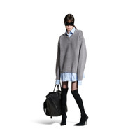 Women's Layered Shirt V-neck Sweater in Grey