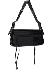 Crinkled patent calfskin shoulder bag in black. · Hardware throughout · Adjustable shoulder strap · Zip pocket at flap and back face · Magnetic press-stud closure · Patch pocket at interior · Canvas lining · H5.5" x W11" x D1.5" Supplier color: Black