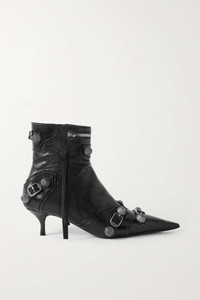 EDITORS'NOTES Balenciaga's 'Le Cagole' boots are adorned with the same studded hardware as the line's iconic bags of the same name. Made from black crinkled-leather, they have elongated zipper pulls that move as you step and sharply pointed toes complemented by slender 70mm heels. SIZE & FIT - Fits true to size, take your normal size - Only available in full sizes, go up to the nearest whole size if you take a half size - Italian sizing DETAILS & CARE - Heel measures approximately 70mm/ 3.5 inches - Black crinkled-leather - Zip fastening along side