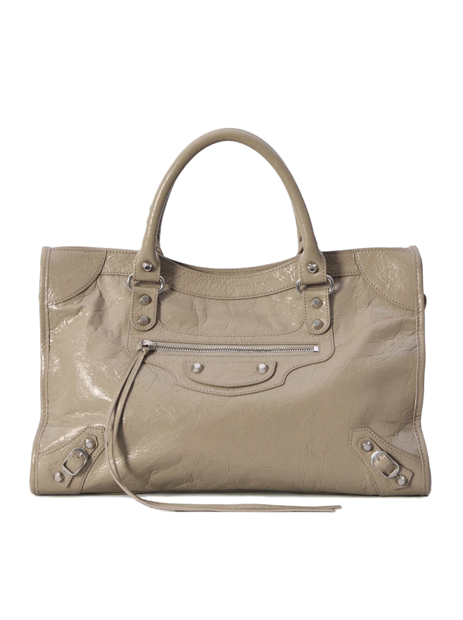 - Dimensions: L15.1 x H9.4 x W5.3 inches - Arena Storico lambskin - Two hand-woven leather handles - Removable shoulder strap (drop: 13.4 inches) - Brass hardware - Zipper closure with knotted leather zipper pull - Front zipper pocket with knotted leather zipper pull - 1 interior zipper pocket - Cotton canvas lining Made in Italy Composition: Lamb Skin 100% Lamb skin Color code: 9706 STONE BEIGE 8230582AA9S