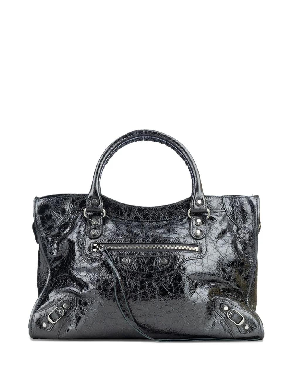 Le City metallic-effect top-handle small tote bag Highlights - Steel grey - Cracked leather effect - Top handle - Silver-tone hardware - Zip fastening - Buckle details Imported Composition Outer: Leather 100%