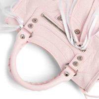Le City Bag Mini in petal pink Arena lambskin with white snow ribbons, aged-silver hardware with rhinestones PRODUCT DETAILS • Arena lambskin with ribbons • Two leather hand-braided handles • Adjustable and removable shoulder strap • Aged-silver hardware with rhinestones • Zipped closure with knotted leather puller • Front zipped pocket with knotted leather puller • 1 inner zipped pocket • Cotton canvas lining • Made in Italy Material: lambskin