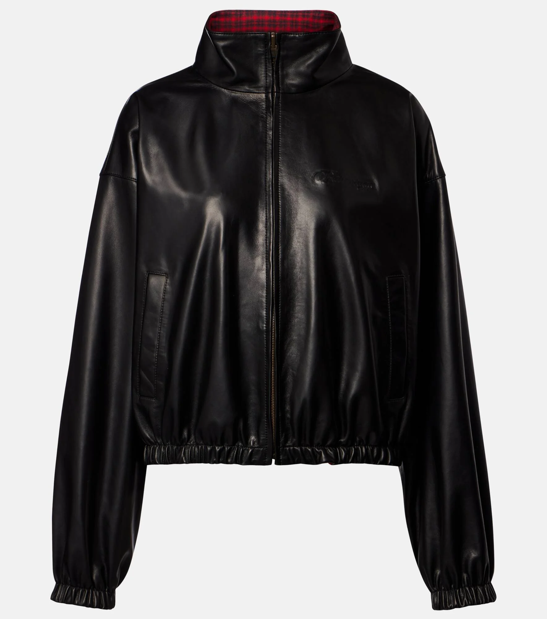Balenciaga has evolved from the heartbeat of Paris to become one of the world’s most influential brands. This tracksuit is made from leather in a reversible design and elasticated trims. Product Details - Material: 100% lamb leather - Care instructions: specialist clean - Made in Turkey - Color: black - Designer color name: Black - Material II: 100% cotton - Reversible - Pocket lining: 100% cotton - Embroidery: 100% polyester - Pockets: snap-buttoned pocket, internal pockets - Contains non-textile parts of animal origin - Cuff: elasticated - Hem: elasticated - Closure: zipped front - Item number: P01118834