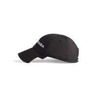 Logo Cap in black and white technical fabric PRODUCT DETAILS • Cotton drill • Classic baseball cap shape • Ventilation eyelets embroidered on top • Adjustable hook and loop tab at back • Visor cut out on both sides • Logo at front • Made in Italy Main material: 100% cotton