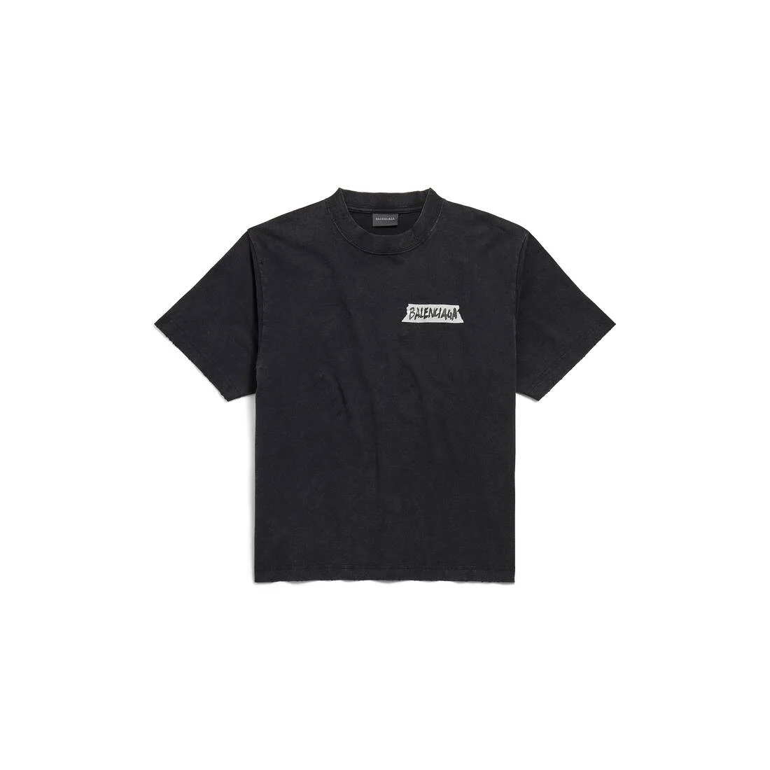 Masking Tape T-Shirt Medium Fit in faded washed black dry jersey PRODUCT DETAILS • Dry jersey • Crewneck • Short sleeves • Masking tape artwork printed at front and back • Made in Portugal Main material: 100% cotton