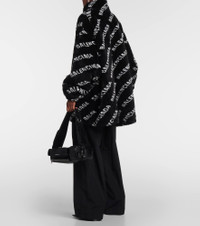 Innovation is at the heart of Balenciaga, which proudly presents its modern interpretation of fashion in every piece. This jacket is made from soft faux fur, dotted all over with the brand’s logo for easy recognition. Product Details - Material: 69% acrylic, 31% polyester - Care instructions: dry clean - Made in Italy - Designer color name: Black/Ivory - Lining: 100% cupro - Pocket lining: 100% cotton - Filling: 100% polyester - Closure: zipped front - Pockets: side slit pockets - Item number: P00418252 Size & Fit - True to size - Designed for an extremely oversized fit - For a closer fit, we recommend taking one size down - Dropped shoulders - Mid-weight material - Falls below the hip - The model seen in the picture is 178cm-5'10" and wearing a size FR 36