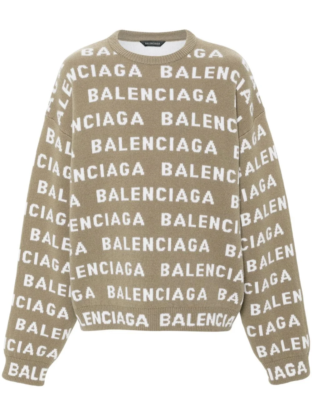 logo-intarsia sweater Highlights - Beige/white - Wool blend - Knitted construction - All-over logo-intarsia pattern - Crew neck - Long sleeves - Ribbed cuffs and hem - When buying this unisex item, keep in mind that it is graded in standard men's sizing. Made in Italy Composition Wool 98%, Polyamide 2% SIZE & FIT Model measurements Height 6 ft 2 in(1.87 m) Bust/Chest 36.41 in(92.5 cm) Hips 37 in(94 cm) Waist 29.52 in(75 cm) FittingInformation This unisex piece is designed for an oversized fit whether you usually select women's or men's sizes Made with a midweight knit, this piece offers some stretch Washing instructions Dry Clean Only