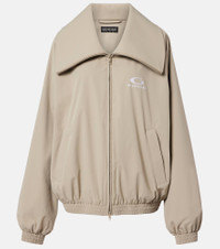 Look to Balenciaga for everyday staples with signature flair. Made from a technical fabric, this track jacket-inspired style is complete with a high collar, a two-way zipped front, and logo detailing at the chest. Product Details - Material: 69% polyester, 31% elastomultiester - Care instructions: dry clean - Made in Italy - Color: beige - Designer color name: Dune - Lining: 91% polyamide, 9% elastane - Embroidery: 100% polyester - Closure: two-way zipped front - Pockets: zipped pockets - Cuff: elasticated - Hem: elasticated - Item number: P01118943