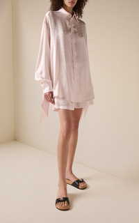 Experimental and minimalistic by design, Balenciaga is renowned for its uncompromising standard and avant-garde creativity. This season is a study of a complete wardrobe, with a focus on comfort. These pajama-inspired boxer shorts have an easy fit made from 'BB' jacquard silk satin with an elastic waistband. Pair it with a tank or the matching shirt from this season. PRODUCT DETAILS - Pre-Fall '25 - Pull on - Composition: 100% silk - Designer color: Pearl White - Dry clean - Made in Italy