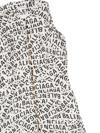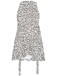 logo-print midi dress Balenciaga leans into logomania for AW22, presenting this logo-print midi dress. The branded design features an all-over iteration of the bold lettering in black, contrasting the light-grey main colourway. Highlights - Light grey/black - All-over logo print - Round neck - Sleeveless - Front button fastening - Tied waist - Curved hem - Mid-length Made in Italy Composition Lining: Cupro 100% Outer: Polyester 100%