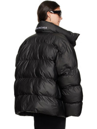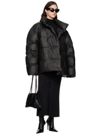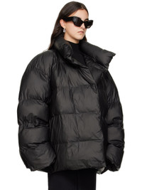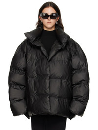 Insulated quilted coated nylon taffeta jacket. · Stowaway hood · Open spread collar · Open front · Zip pockets · Logo embroidered at back collar · Fully lined Supplier color: Black