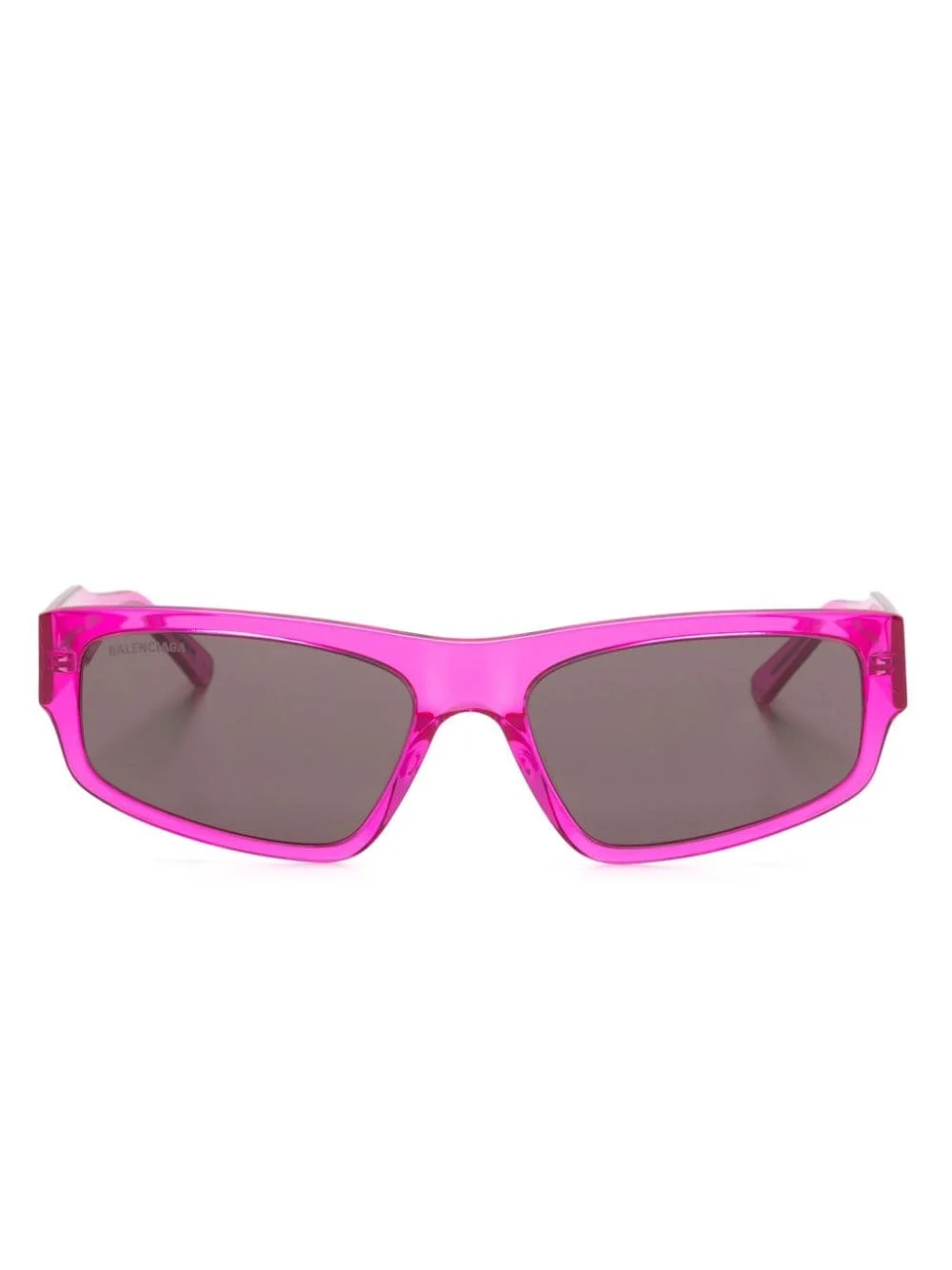 logo-print rectangle-frame sunglasses Rendered in hot pink, these sunglasses from Balenciaga Eyewear are designed with a rectangle frame. The pair features UV-protective grey tintes lenses and is finished with logo-printed arms for a branded look. Highlights - Hot pink - Acetate - Rectangle frame - Grey tinted lenses - Uv-protective lenses - Lens decal - Logo print at the arm - Straight arms - Curved tips - These glasses come with a protective case. Made in Italy Composition Outer: Acetate 100% SIZE & FIT Measurement Arm Length 5.7 in(14.5 cm) Bridge Width 0.7 in(1.8 cm) Lens Diameter 2.28 in(5.8 cm) Total Width 5.9 in(15 cm)