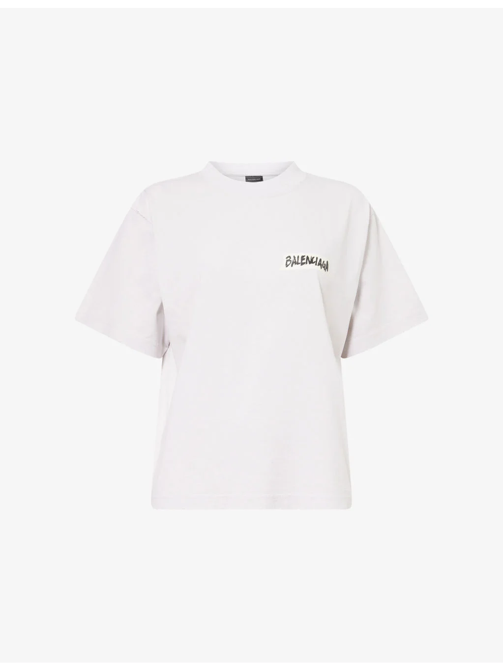 PRODUCT DETAILS - Balenciaga cotton t-shirt - 100% cotton - Relaxed fit, round neck short sleeves, printed logo at front and back - Machine wash at 30°C - Made in Portugal - True to size - Model is 5ft 10in/1.78m and wears a size small - Lightweight, stretchy Ref: R04589013