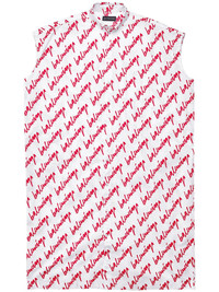 logo-print shirt dress Logomania has arrived for Balenciaga's AW23 season. Boasting the brand's signature throughout in a contrasting bright red colour to the white body, this dress is offered in a shirt silhouette for a relaxed look. Highlights - White/bright red - Cotton - All-over logo print - Classic collar - Front button fastening - Sleeveless - Straight hem Made in Italy Composition Cotton 100%