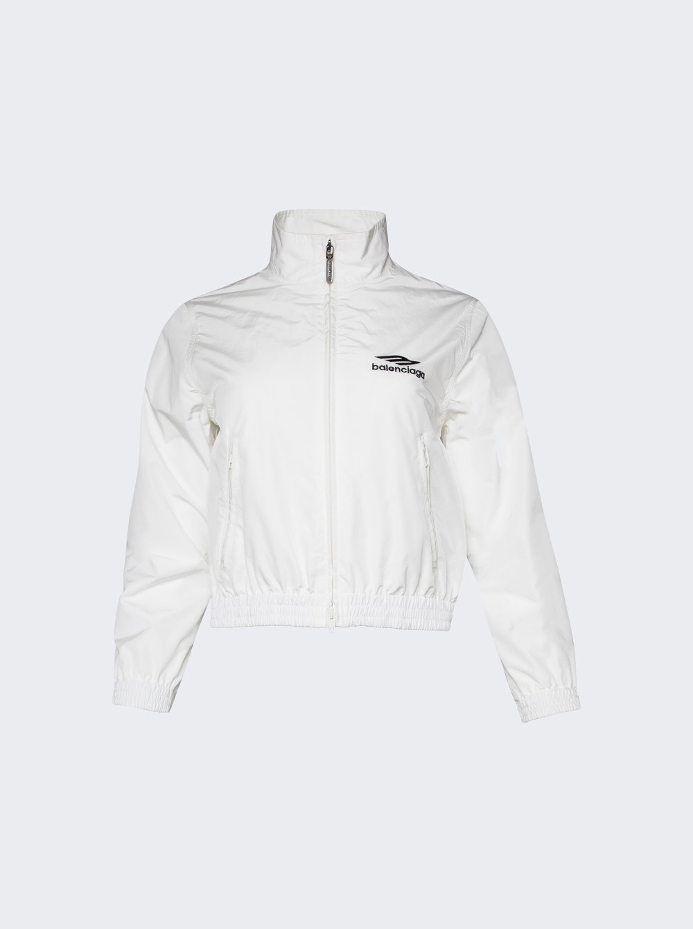 Details - High neck - Double-ended zip fastening - Two zipped slash pockets - Elasticated cuffs and waistline - Balenciaga logo embroidered at chest - Topstitching Dimensions: Model is 5'9"/175cm and is wearing a size FR36 Composition: Polyester Care: Care according to label Brand Style: 769015 TNQ25 Designer/Brand: BALENCIAGA