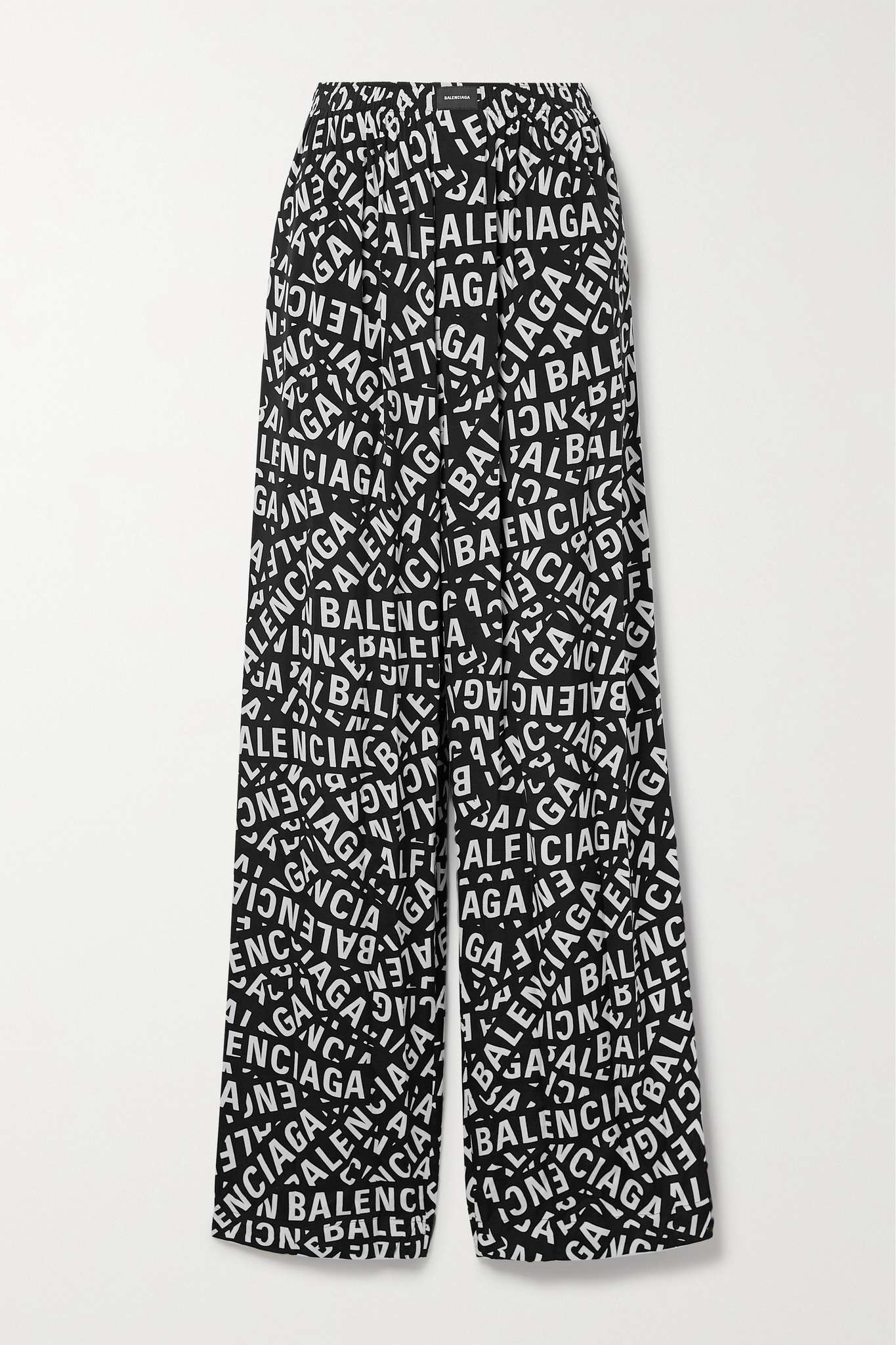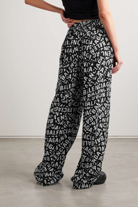 EDITORS'NOTES Balenciaga's pajama pants are patterned with a mesmerizing array of logos in contrasting white lettering. Designed for a wide-leg fit, they're made from crisp poplin and have a comfortable elasticated waistband. Wear yours in the city with a bomber jacket and chunky slides. SIZE & FIT - Fits true to size, take your normal size - High-rise, designed for a wide-leg fit DETAILS & CARE - Black and white poplin - Pull on - 55% cupro, 45% viscose - Dry clean
