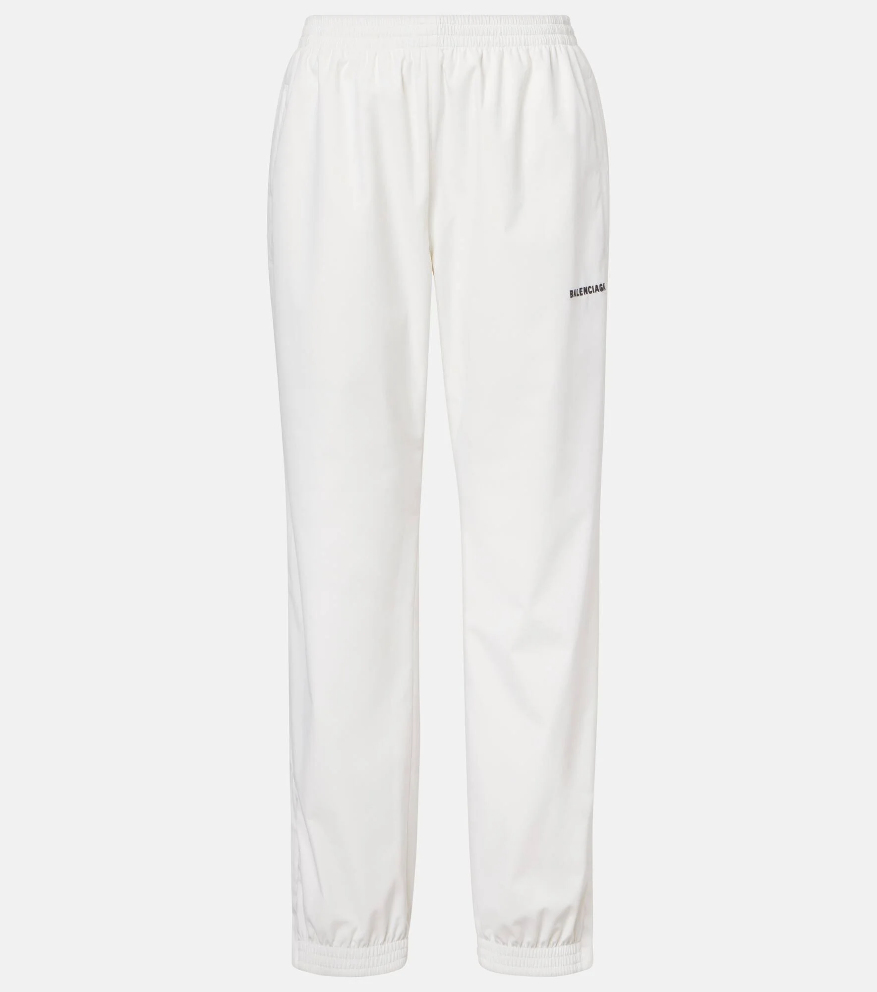 The sweatpants from Balenciaga feature an elasticated waistband, zippered ankle cuffs, and a printed logo on one leg. This piece includes a full mesh lining for a comfortable fit. Product Details - Material: 100% polyester - Care instructions: dry clean - Made in Italy - Designer color name: White - Item color: white - Lining: 100% polyester - Embroidery: 100% polyester - Elasticated drawstring waist - Pockets: zipped pockets - Zipped ankle cuffs - Item number: P01058262 Size & Fit - True to size - Elasticated waist - Adjustable at the waist - Non-stretchy fabric - Straight leg - The model seen in the picture is 178cm-5'10" and wearing a size XS