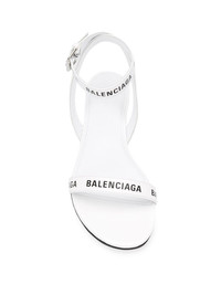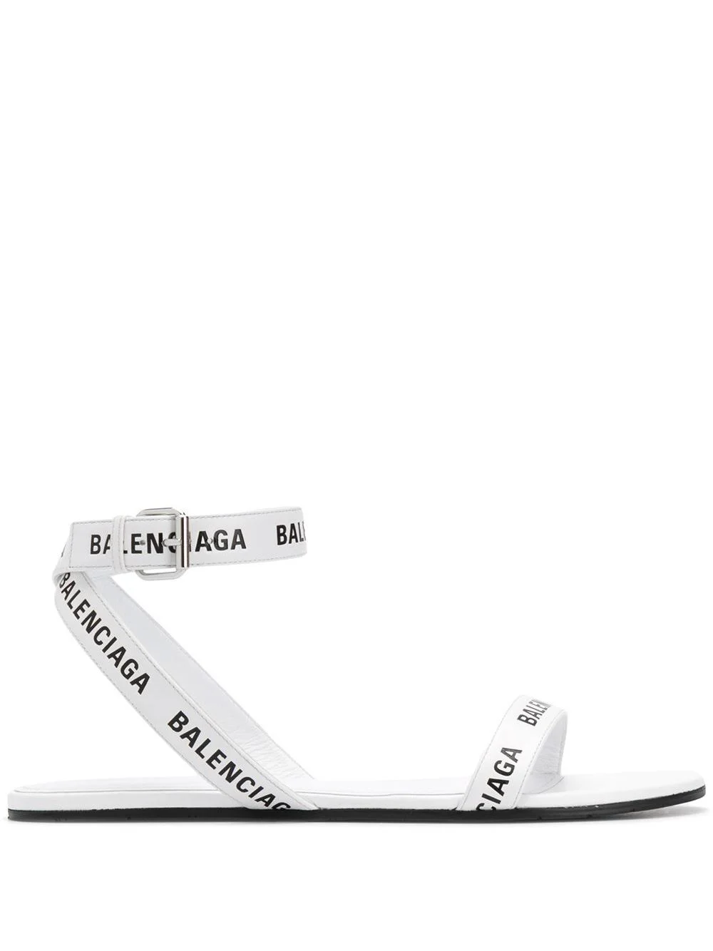 logo strap sandals Balenciaga continues to create directional footwear season after season that subverts classical structure resulting in innovative footwear lasts. These black and white leather round flat sandals from Balenciaga feature an open toe, a strappy design, an ankle strap with a side buckle fastening, silver-tone hardware, a flat sole and contrasting printed logos. Made in Italy Composition Outer: Leather 100% Sole: Rubber 100% Lining: Leather 100%