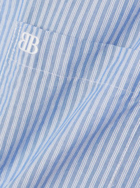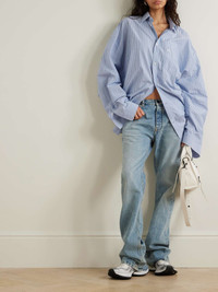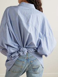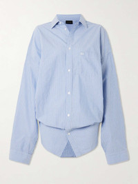 EDITORS'NOTES Balenciaga's shirt comes pre-styled with a sewn knot at the back, so it'll always look perfectly slouched. Made from striped cotton, it has an oversized fit with a patch pocket featuring the logo embroidery. SIZE & FIT Model measurements: - Fits true to size, take your normal size - Designed for an oversized fit, cut to be worn very loose - Cropped length - Mid-weight, non-stretchy fabric - Model is 180cm/ 5'11" and is wearing a FR 36 - Bust: 80cm/ 31.5" - Waist: 67cm/ 26" - Hip: 89cm/ 35" DETAILS & CARE - Blue and white cotton - Button fastening through front - 100% cotton - Machine wash