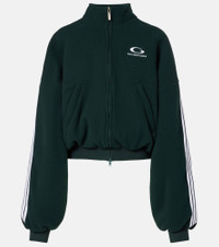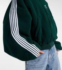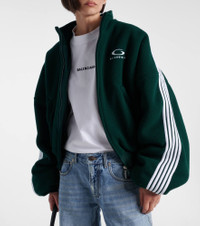 Crafted in Italy, this fleece jacket from Balenciaga features an oversized silhouette and sleeves. The design features the iconic Loop Sports Icon logo embroidered on the front. Product Details - Material: 100% polyester - Care instructions: dry clean - Made in Portugal - Designer color name: Cypress Green - Item color: green - Material II: 100% cotton - Trim: 96% cotton, 4% elastane - Filling: 100% polyester - Embroidery: 100% polyester - Closure: two-way zipped front - Pockets: welt pocket - Cuff: ribbed - Hem: ribbed - Item number: P01033711 Size & Fit - True to size - Oversized shoulders - Dropped shoulders - Elasticated waist - Slightly stretchy fabric - Slightly cropped - The model in the picture is 185cm-6'1" and wearing a size L