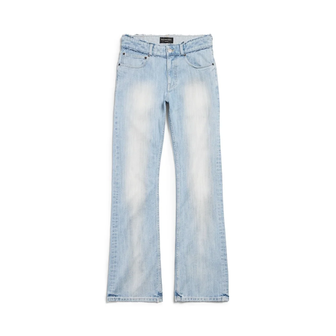 Low Waist Pants in light blue denim PRODUCT DETAILS • Cotton denim • Covered zip fly • 5 large belt loops • 5 pockets • Balenciaga engraved flex buttons • Balenciaga Jeans leather patch at back • Made in Italy Main material: 100% cotton